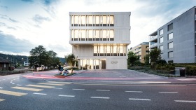Der neue Geschäftssitz der KMP Architektur AG befindet sich an der Bahnhofstrasse in Wettingen. Charakteristisch für das Bürogebäude sind die Travertin-Fassade und das offene, über vier Geschosse gestaltete Treppenhaus, welches das Herzstück des Gebäudes ist. Das Raumkonzept sieht vor, dass alle Büro- und Sitzungsräume sowie Sekretariat und Cafeteria über das Treppenhaus erschlossen sind. Zwei Terrassen, eine im Erdgeschoss mit Grillplatz und Wasserspiel und eine im Attikageschoss, runden das Angebot für die Mitarbeitenden ab. Das Gebäude wurde nach dem neusten energetischen Standard erstellt.
