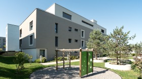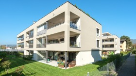 In Wettingen wurden an ruhiger und zentraler Lage zwei Mehrfamilienhäuser mit insgesamt 21 Wohnungen in Minergie P-Standard realisiert. Mit 2½-, 3½-, 4½ und 5½-Zimmerwohnungen verfügen die Mehrfamilienhäuser über ein vielfältiges Angebot an unterschiedlichen Wohnungstypen. Die Wohnräume sind nach Südwesten orientiert und optimal besonnt. Mit den dreiseitig von der Fassade zurückgesetzten Attikageschossen fügen sich die dreigeschossigen Gebäude gut in die bestehende städtebauliche Struktur. ein Die Abfolge der Sitzplätze und die vorgelagerten Balkonschichten an der Südwestfassade bestimmen das Erscheinungsbild der Wohnhäuser. Grosszügige Verglasungen im Wohnbereich und hohe Fenster in den Zimmern bieten eine helle und freundliche Wohnatmosphäre.